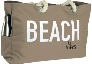 "Beach Vibes" - 100% Waterproof XXL Beach Bag with Rope Handles (Tan)
